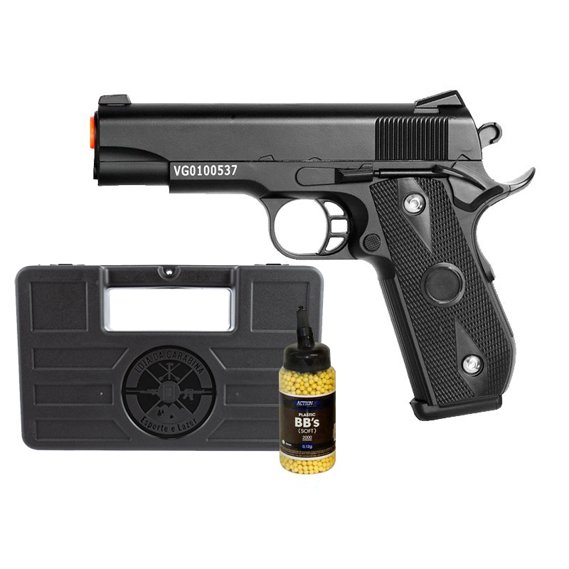 Pistola Airsoft Full Metal, modelo 1911 é fabricada pela Vigor e tem ação spring(mola).