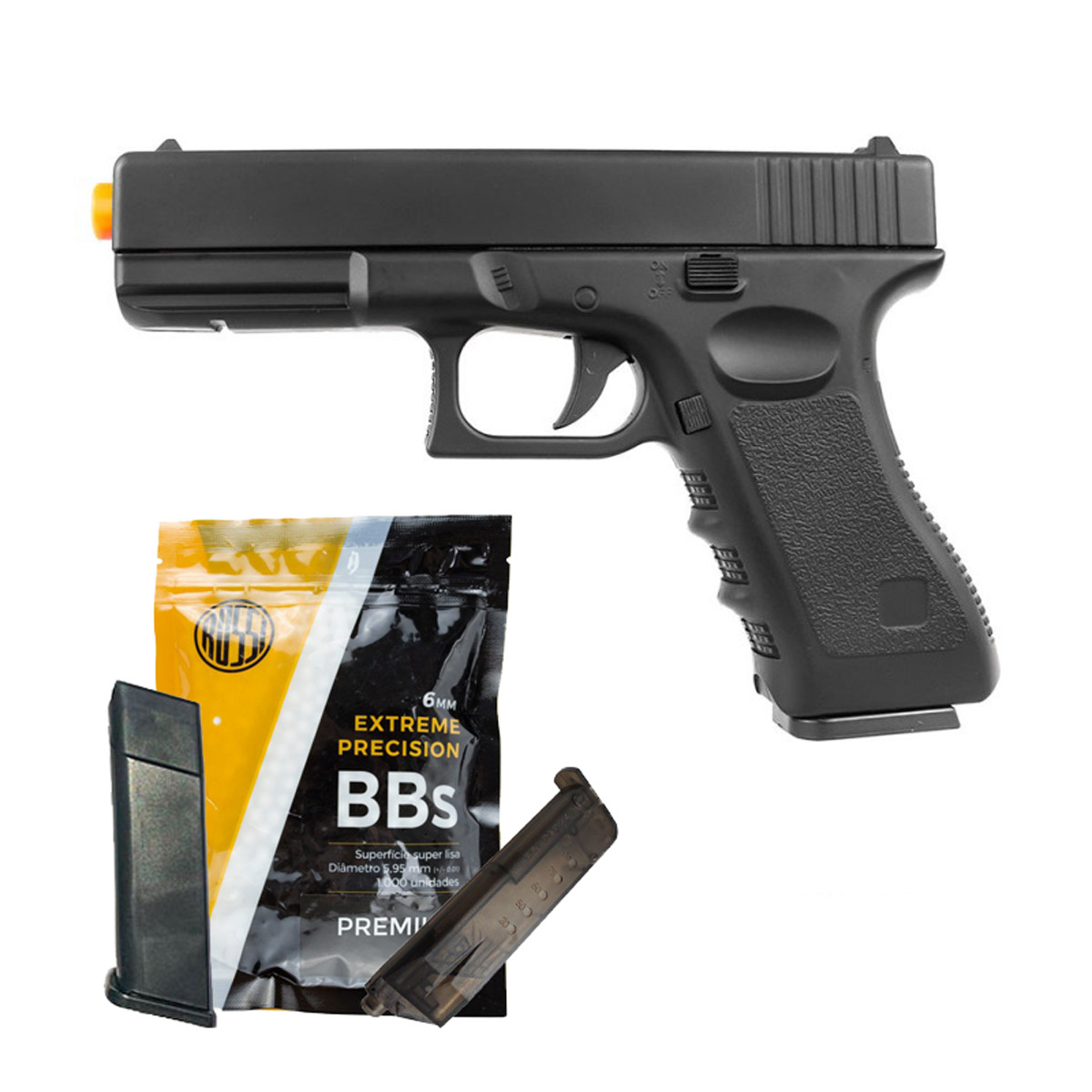 PISTOLA AIRSOFT SPRING FULL METAL GLOCK GK-V20 6MM + AIRSOFT BBS 0.12 ROSSI PACOTE COM 1000 UNIDADES