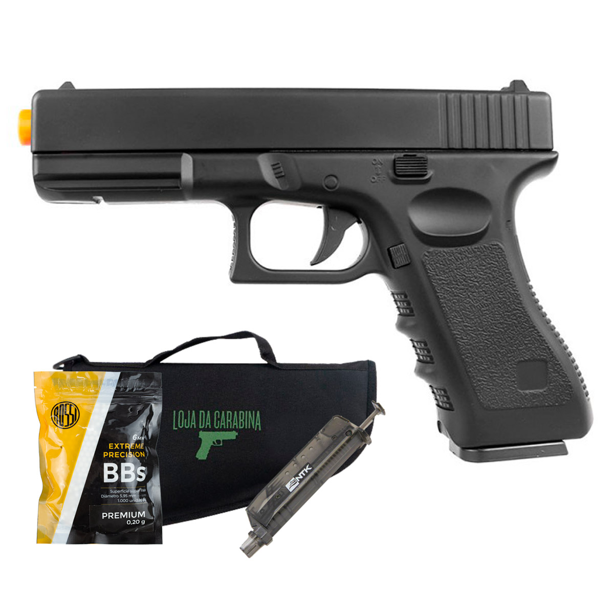 PISTOLA AIRSOFT SPRING FULL METAL GLOCK GK-V20 6MM + CAPA UNIVERSAL LC PARA PISTOLAS 30CM
