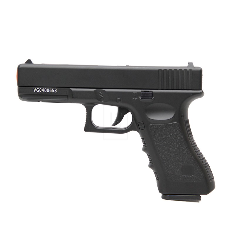 Pistola Spring construída em metal com escala 1/1 semelhante a arma de fogo Glock.
