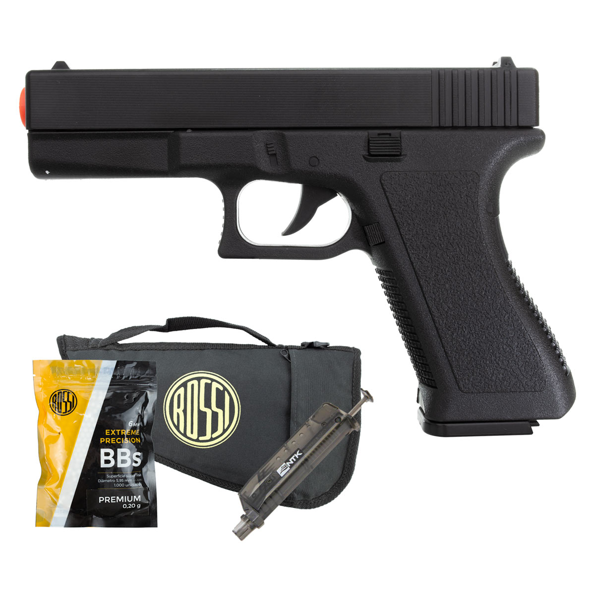 PISTOLA AIRSOFT SPRING GLOCK GK-V307 VIGOR + CAPA PARA PISTOLAS ROSSI 30CM