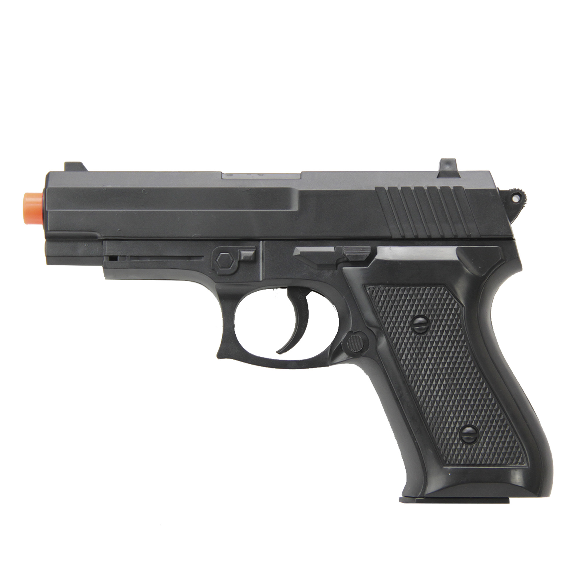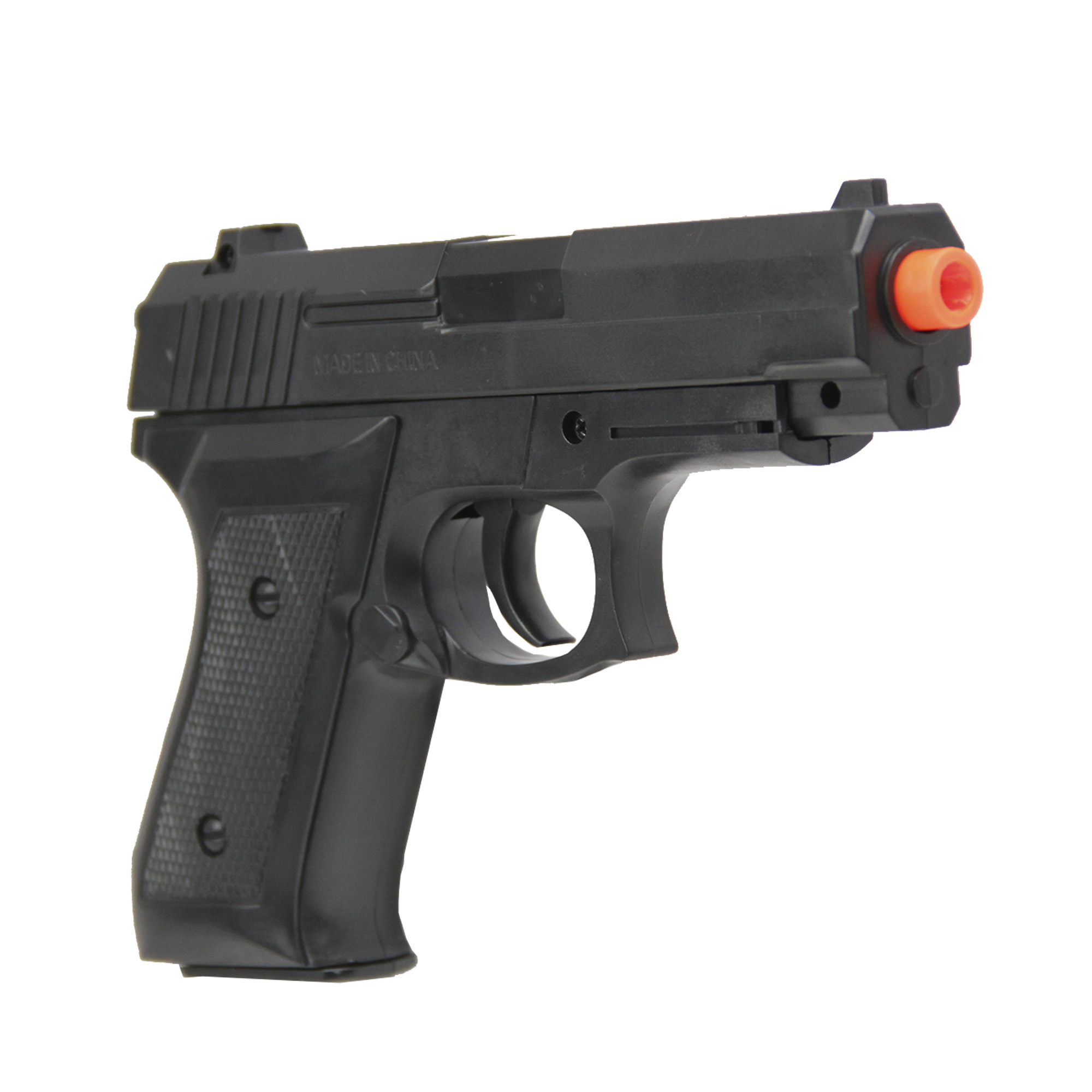 Ação Spring (mola) ou seja, para efetuar cada disparo é necessário engatilhar a pistola movimentando o slide para frente e para trás.