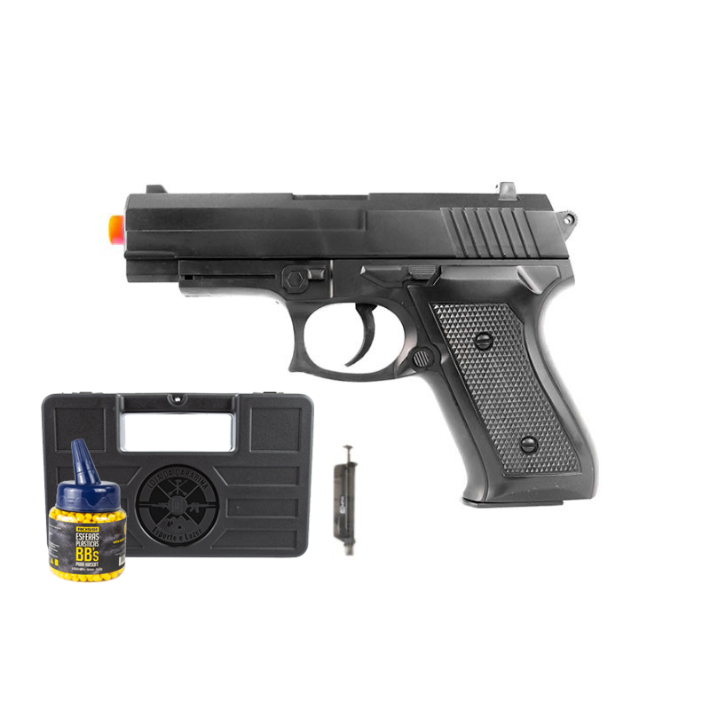 Acompanha também munições BBs 0,12g e uma maleta rígida para o transporte prático e seguro.
