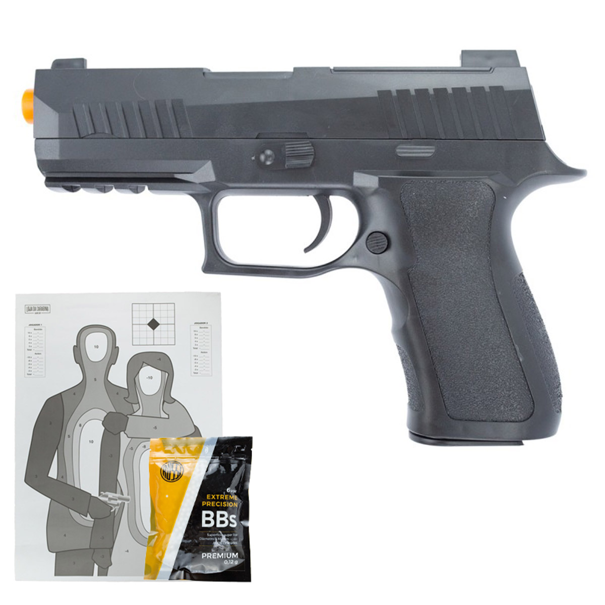 PISTOLA AIRSOFT SPRING P320 V311 VIGOR 6MM - AIRSOFT BBS 0.12 ROSSI PACOTE COM 1000 UNIDADES
