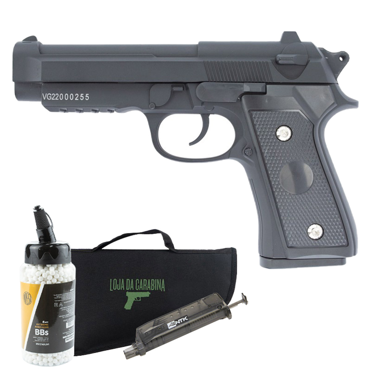 PISTOLA AIRSOFT SPRING PT92 V22 VIGOR + BBS + SPEEDLOADER + CAPA