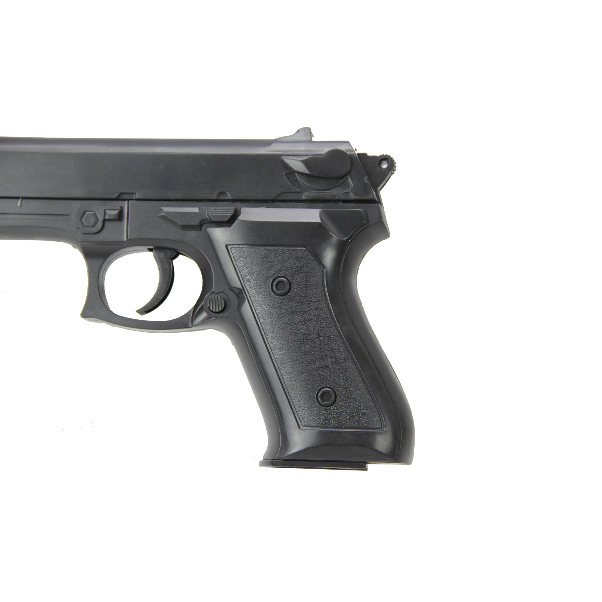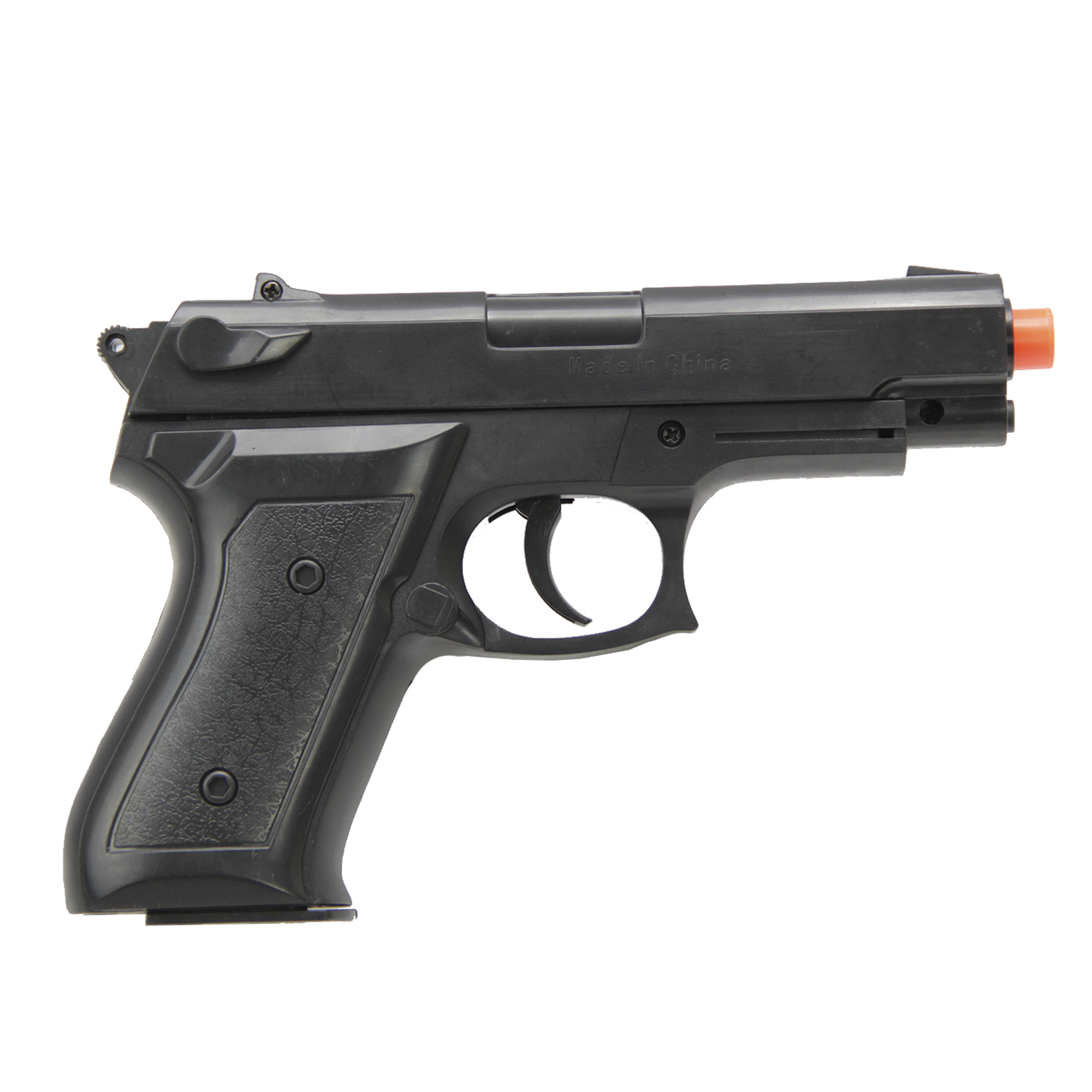 Possui alça e massa de mira fixa e magazine com capacidade para até 10 BBS de 6mm. Pistola Airsoft Spring ideal para quem quer iniciar no esporte.