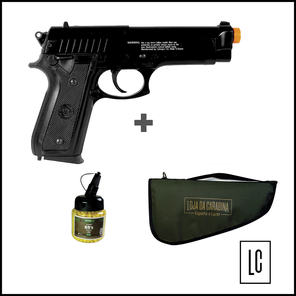 Pistola Airsoft PT92 + Capa + BBs 0.12g 1000 Un
