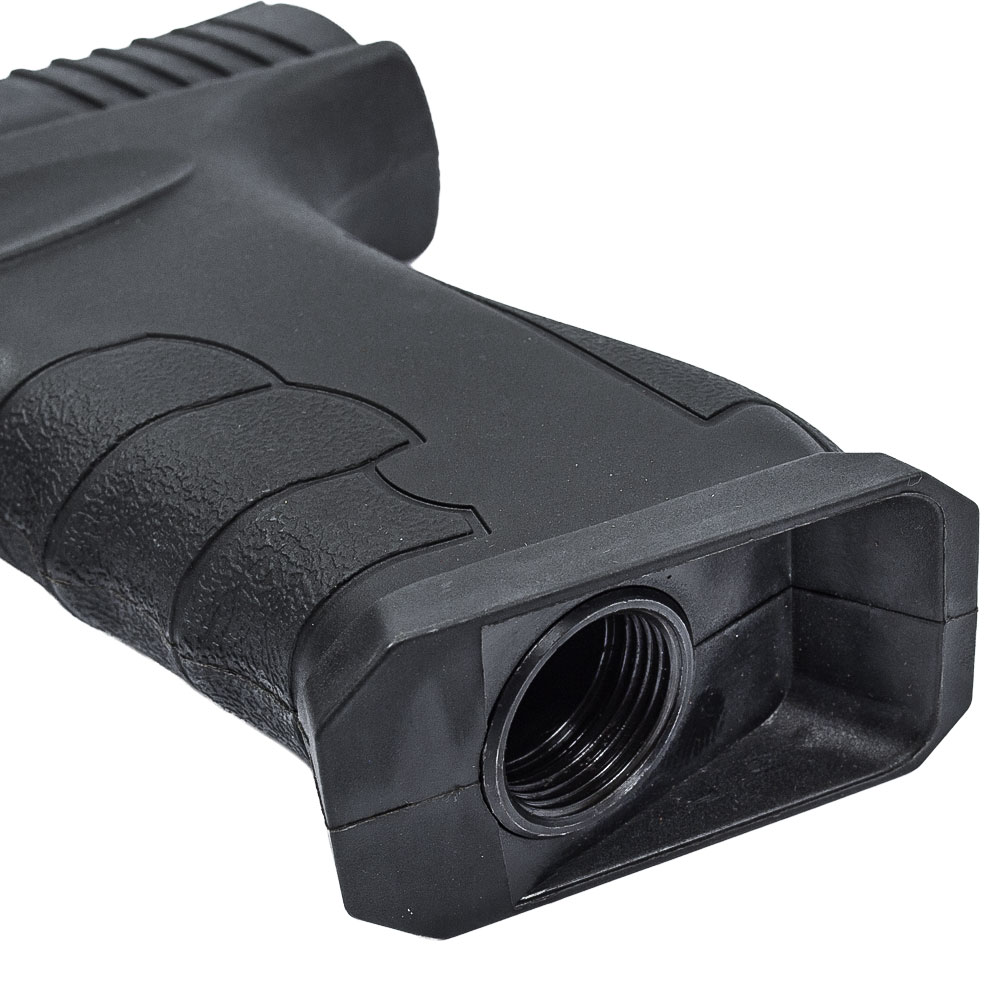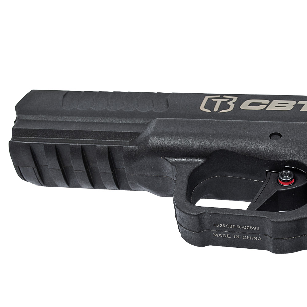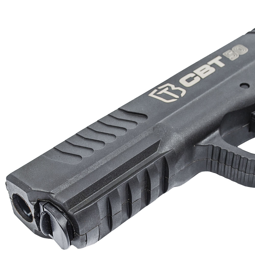 A CBT 50 conta com trilho inferior para instalação de acessórios como lanterna ou laser, alça e massa de mira fixas para disparos precisos, um beavertail de bom encaixe na mão e com ranhuras no pistol grip, garantindo uma empunhadura firme e confortável.