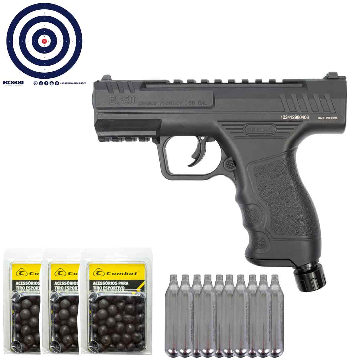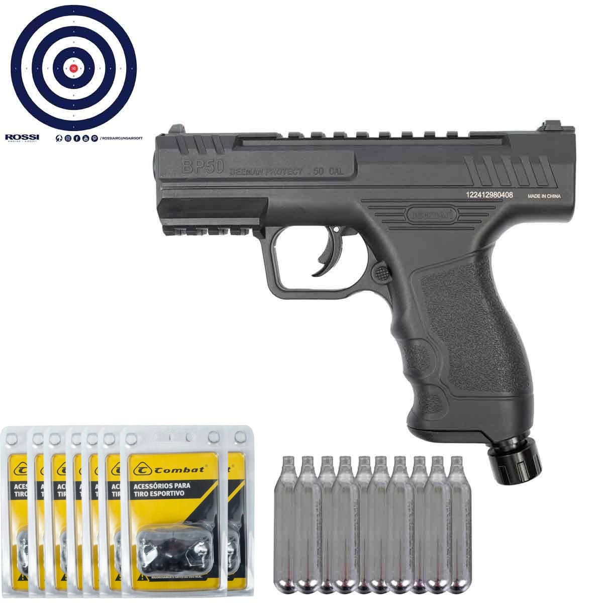 Pistola CO2 Beeman Protect BP50 .50 + Maleta Rigida + 300 Esferas .50 + 10 CO2 + Alvos