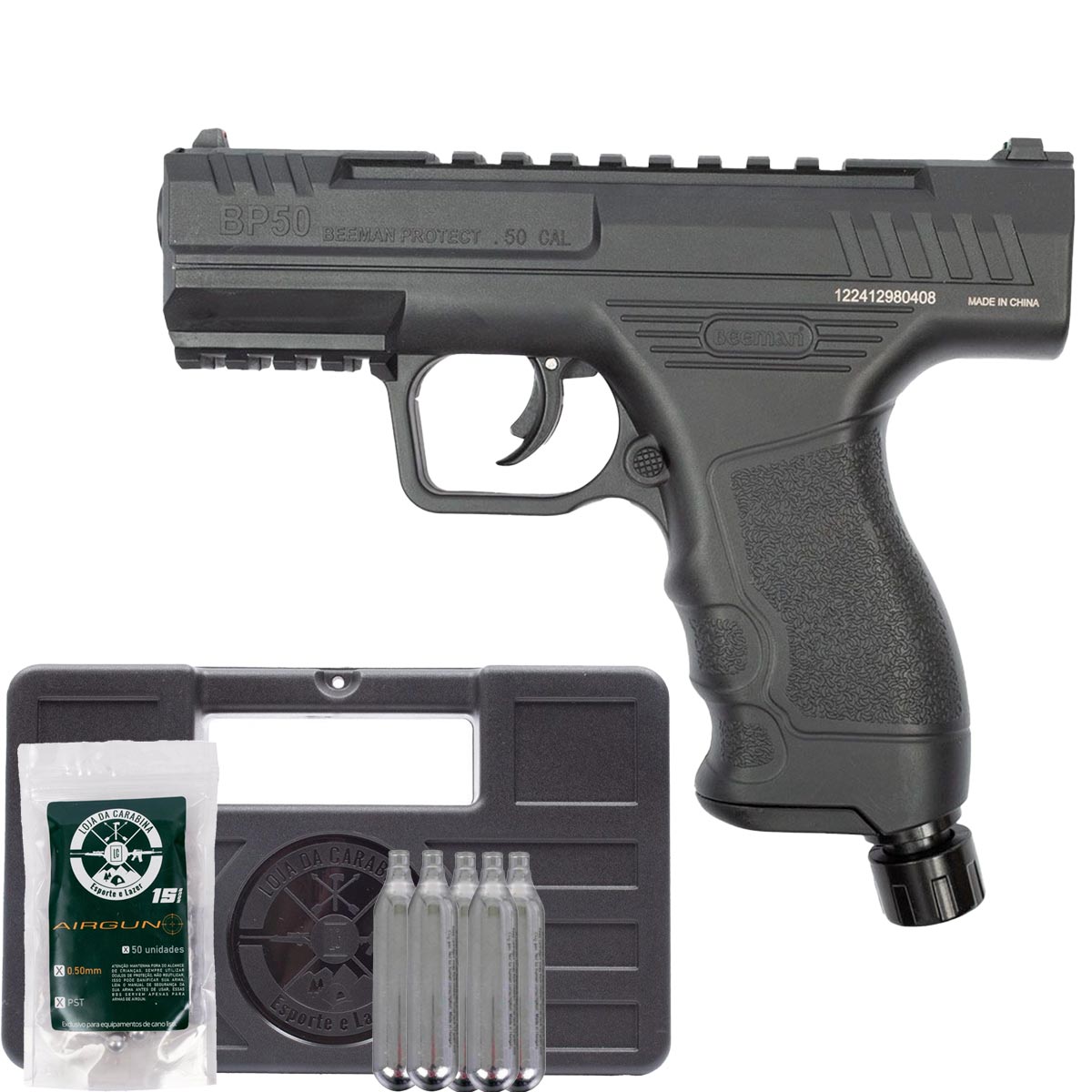 Pistola CO2 Beeman Protect BP50 .50 + Maleta Rigida + Esferas .50 + CO2