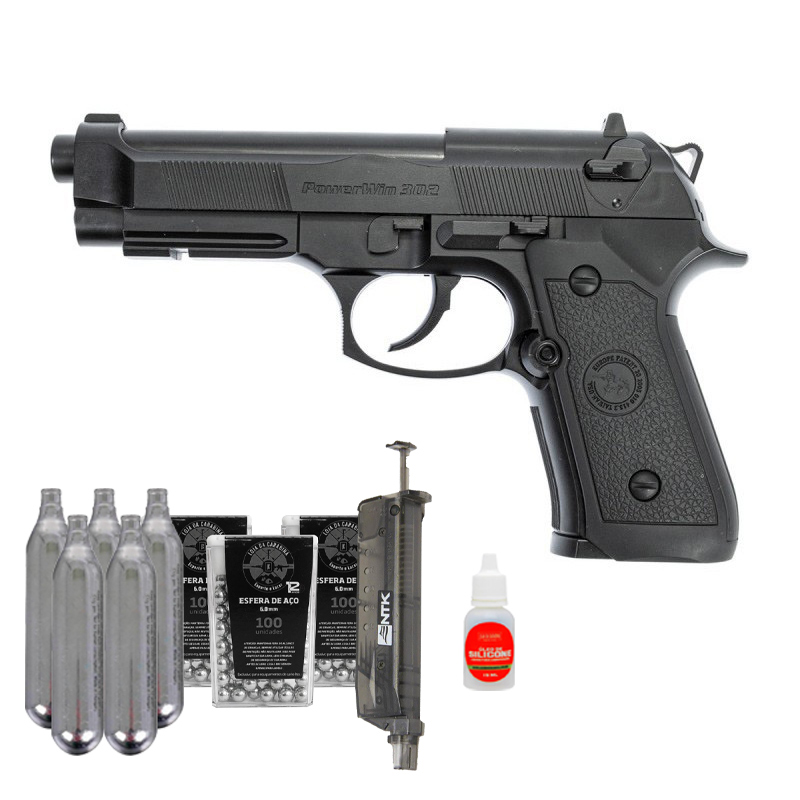 PISTOLA CO2 BERETTA 6.0MM + SPEEDLOADER NTK + ESFERA DE AÇO 6MM + CO2 + ÓLEO DE SILICONE