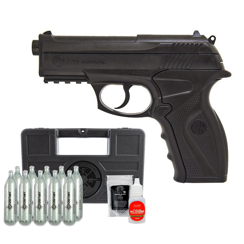 PISTOLA C11 ROSSI 6MM + ESFERAS DE AÇO 500UN + CO2 CROSMAN + MALETA RÍGIDA + ÓLEO