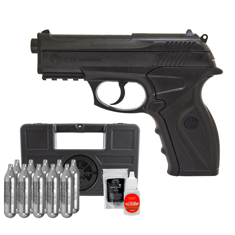 PISTOLA C11 ROSSI 6MM + ESFERAS DE AÇO + CO2 + MALETA RÍGIDA + ÓLEO
