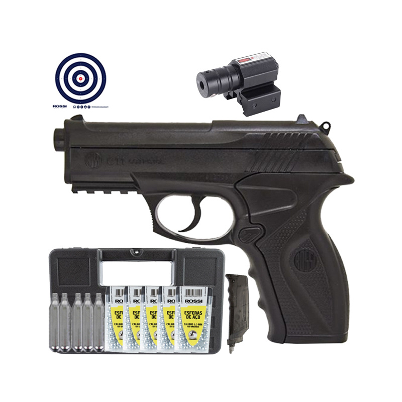 C11 ROSSI 6MM - PISTOLA DE PRESSÃO CO2 6MM + CASE LC + MIRA LASER + SPEEDLOADER + ESFERAS + CO2 + ALVOS