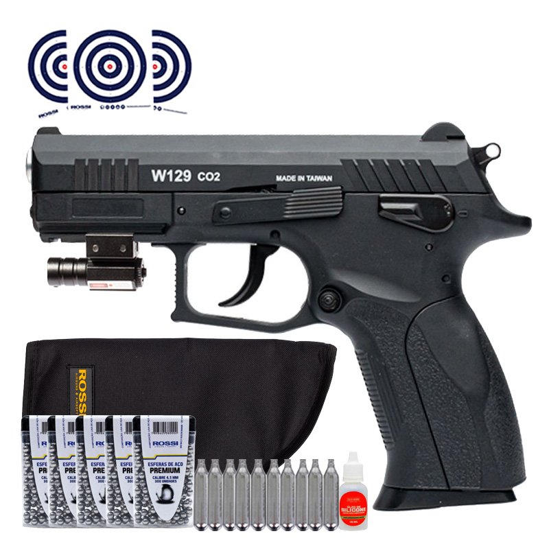 Pistola Co2 CZ300 W129 4.5mm Blowback + Capa Rossi + Mira Laser + Esferas Rossi + CO2 + Oleo + Alvos