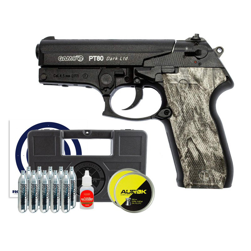 PISTOLA CO2 GAMO PT-80 + CHUMBINHO + CO2 + MALETA + ÓLEO + ALVO
