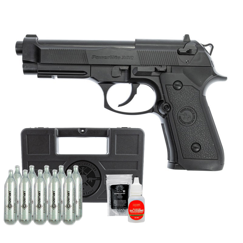 PISTOLA CO2 BERETTA 6.0MM + ESFERAS DE AÇO + CILINDRO CO2 CROSMAN + CASE RÍGIDA + ÓLEO
