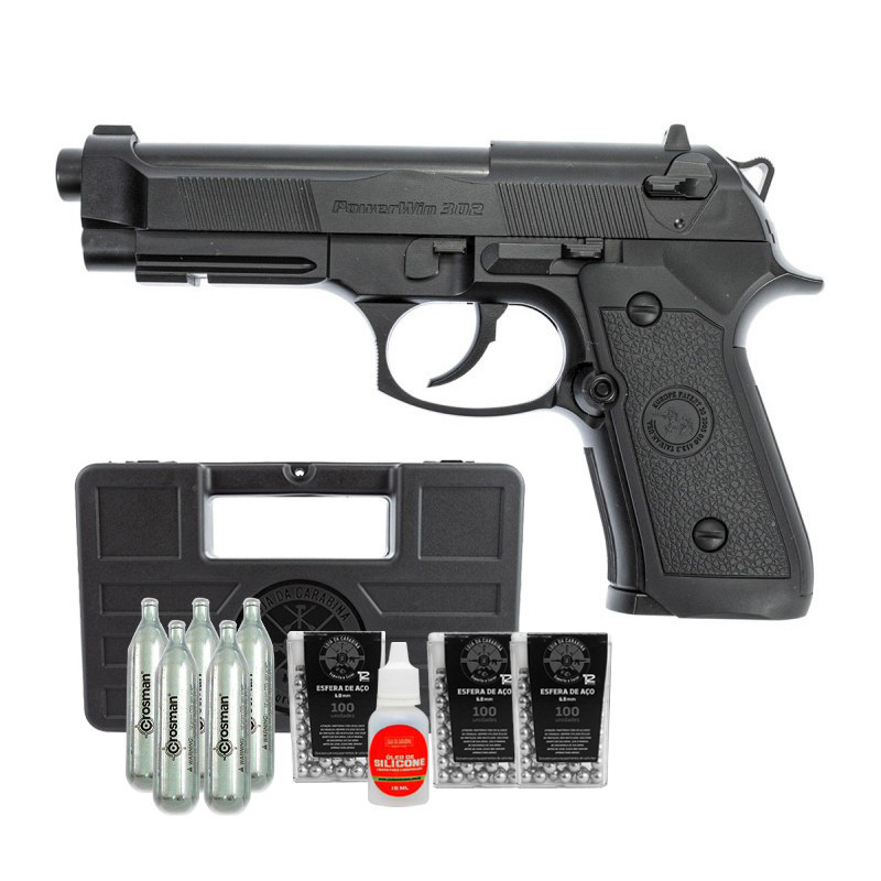 PISTOLA CO2 BERETTA 6.0MM + ESFERAS DE AÇO 300UN + CO2 CROSMAN + MALETA RÍGIDA + ÓLEO