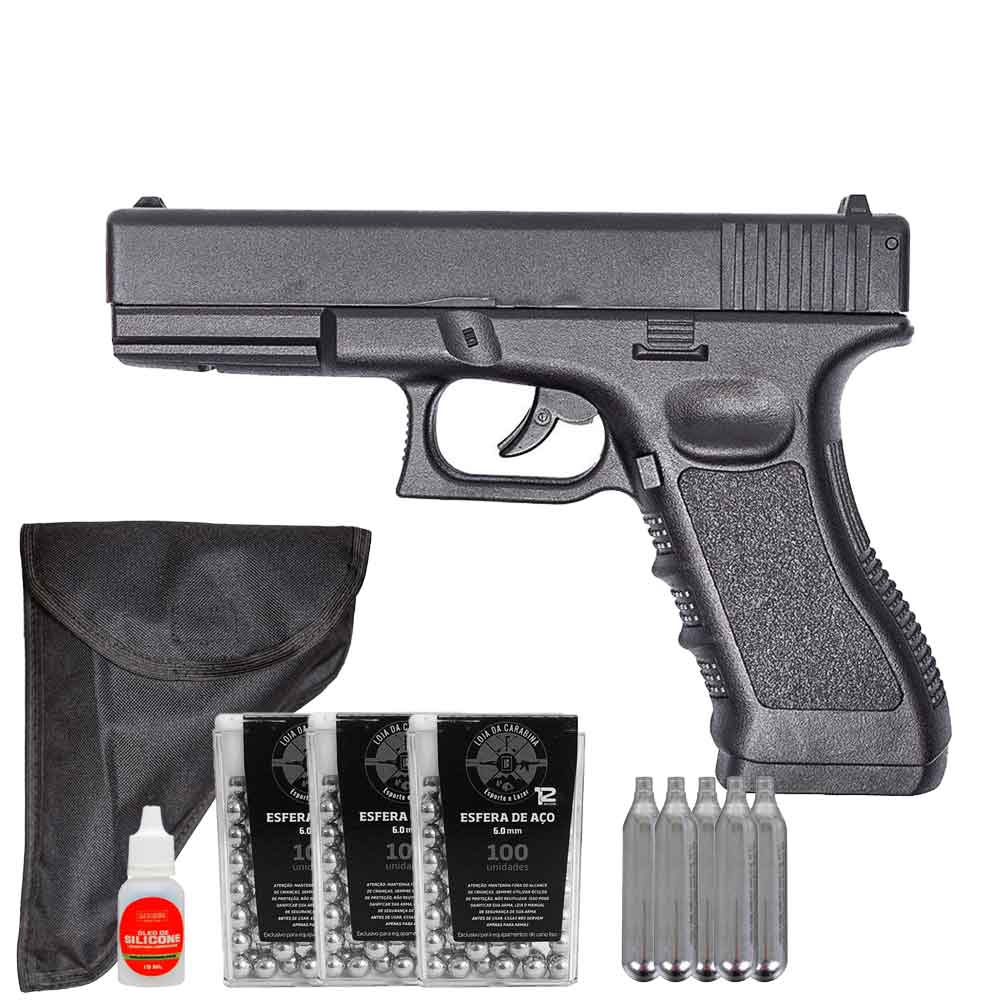 Pistola Co2 Rossi G17 6mm + Esferas + Capa Coldre + Cilindro Co2 + Óleo