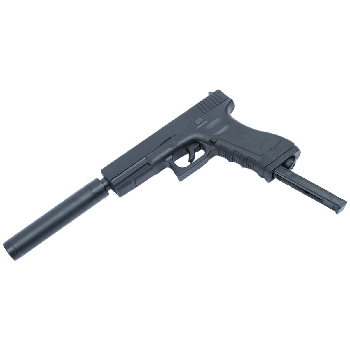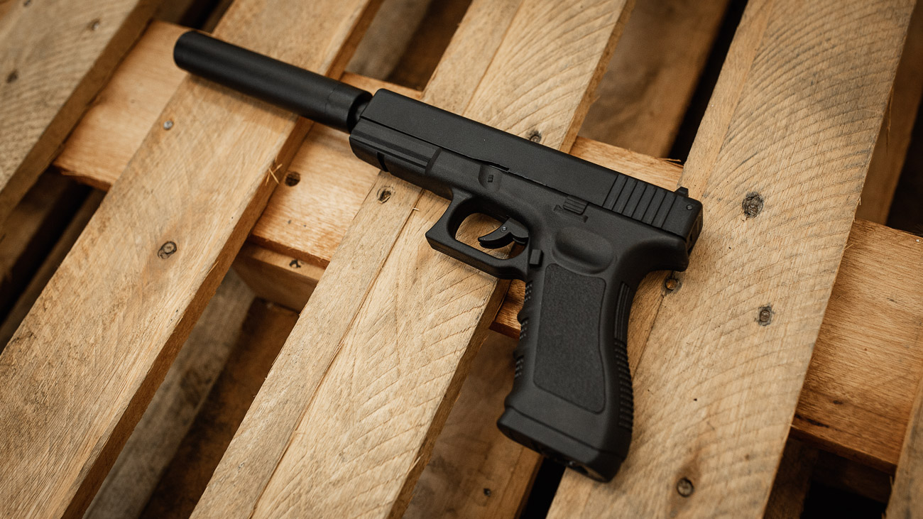 A G17 Magnum possui um design clássico, com corpo construído em polímero resistente e componentes internos em metal, garantindo durabilidade e uma boa sensação nas mãos, pesando 490 gramas. Para você, que é apaixonado em Modelos da Pistola Glock, esta é uma ótima opção, ainda mais com o "silenciador"!