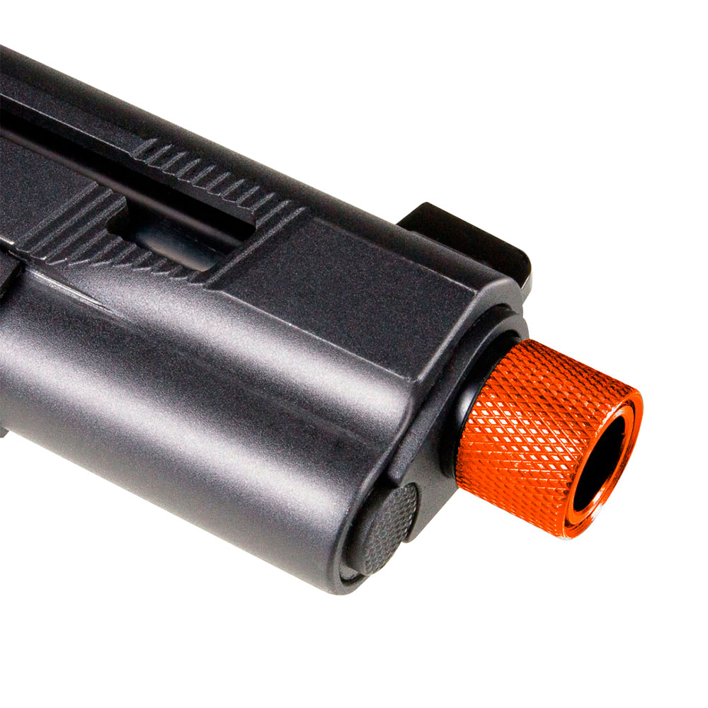 Possui rosca padrão de 14mm para fixação de silenciador de pistola.