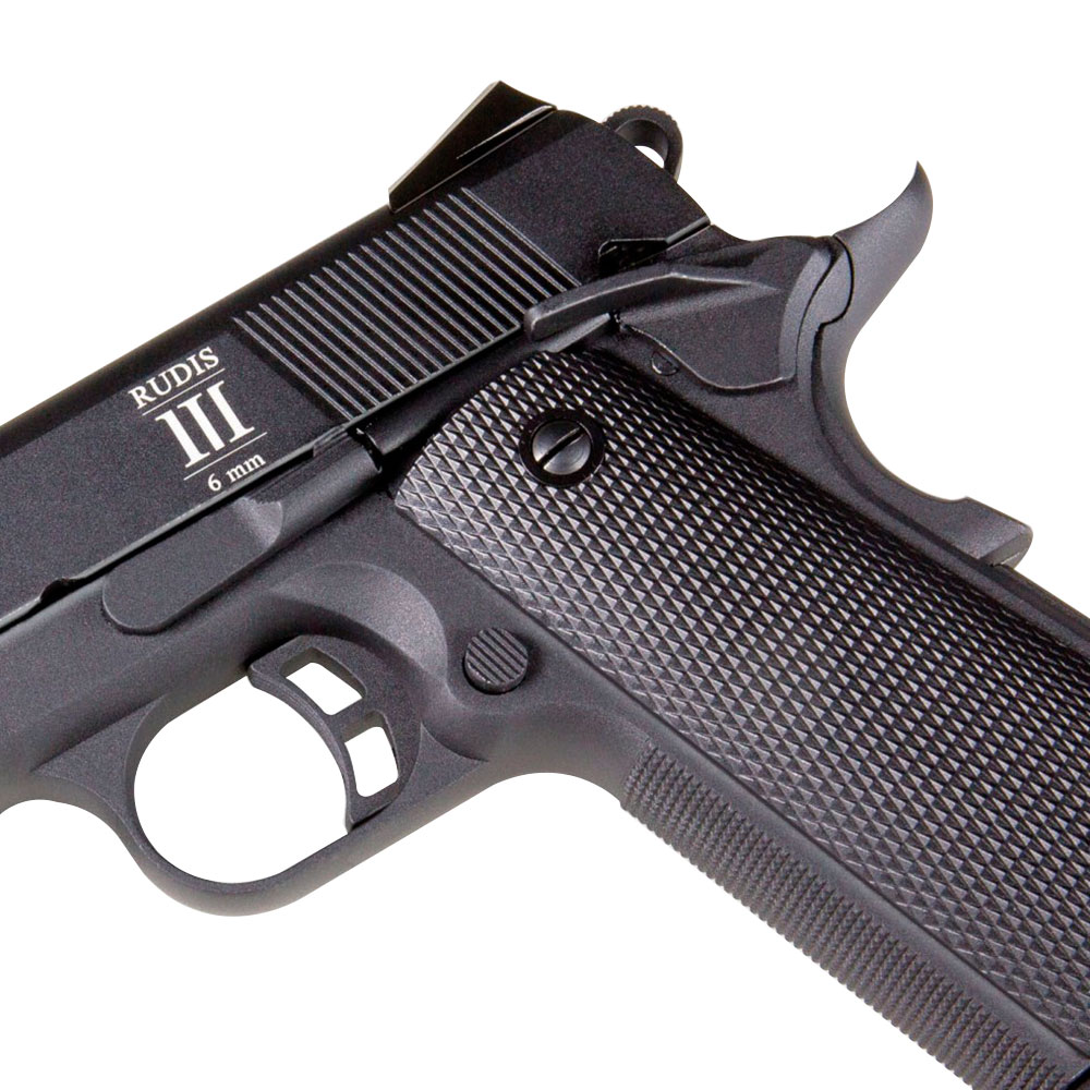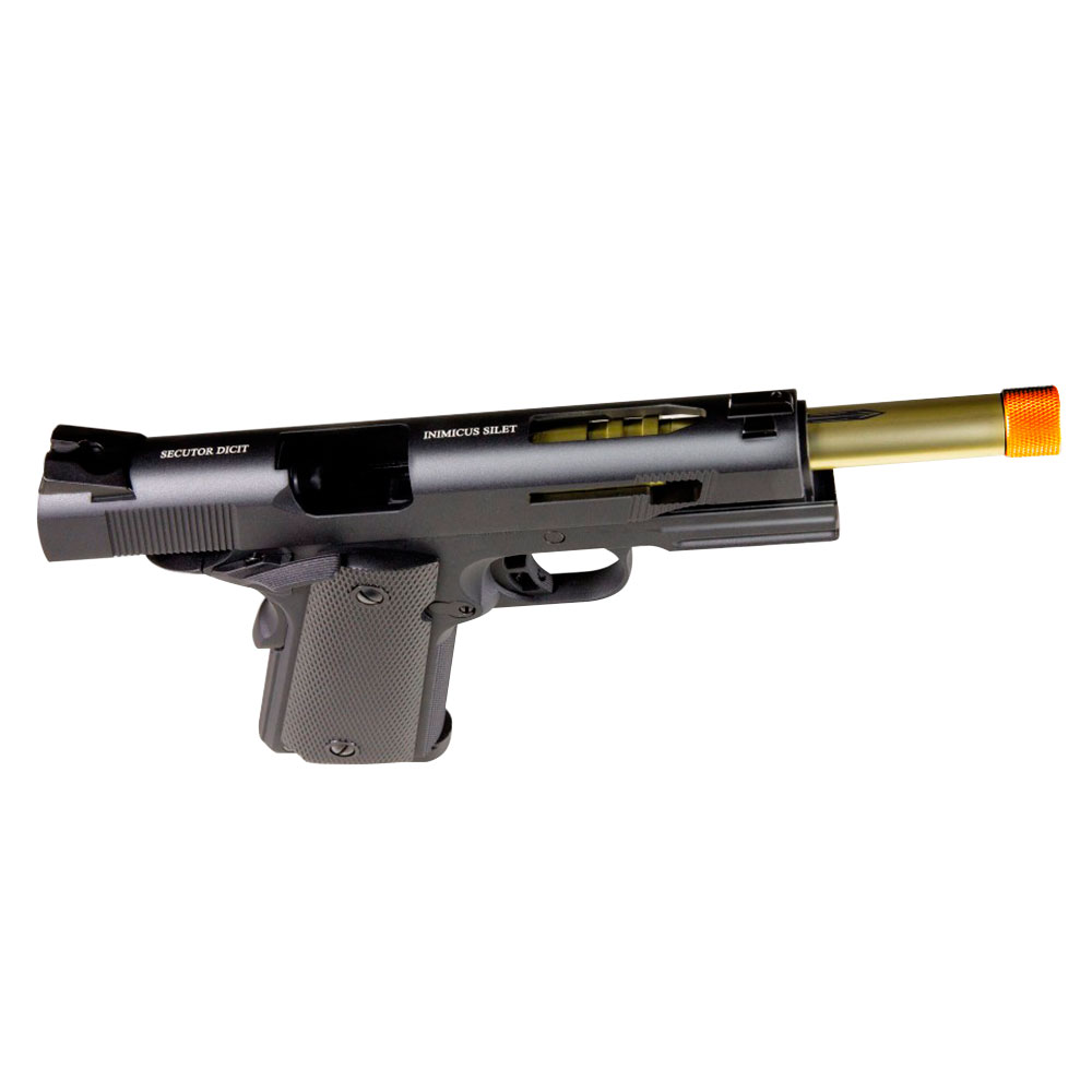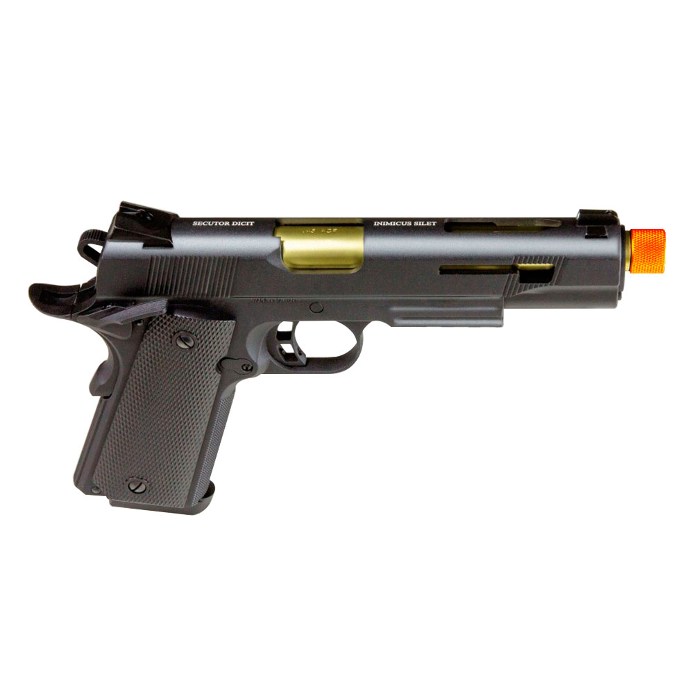 Pistola Airsoft Secutor Rudis Model III 1911 possui ação por Co2 ou a Gás.