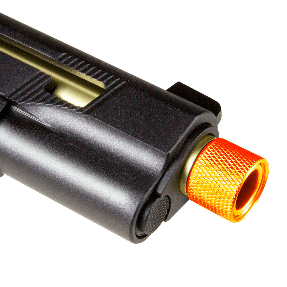 Possui rosca padrão de 14mm para fixação de silenciador de pistola.