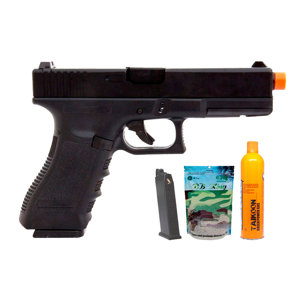 A Pistola de Airsoft a Gás GBB Green Gas Glock R17, é indispensável para jogadores que procuram uma pistola modelo Glock com Blowback e green gás como forma de atuação. Modelo muito realista e com o sistema blowback, torna a experiencia de tiro muito real, devido ao seu excelente recuo após o disparo.