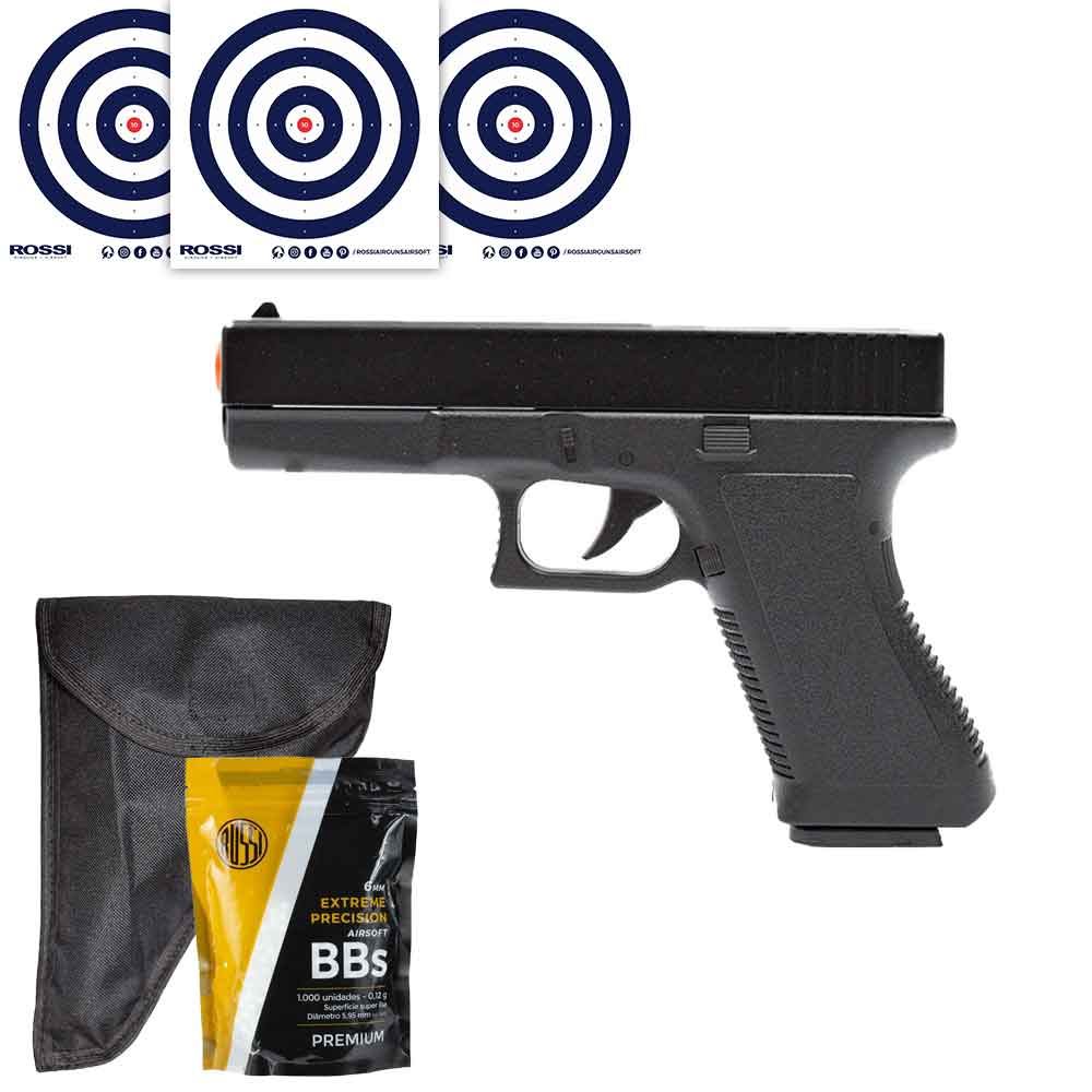 Pistola de Airsoft Spring Glock GK-V500 Slide Metal Vigor 6mm + BBs 1000 Un +Alvos 30 Un + Capa