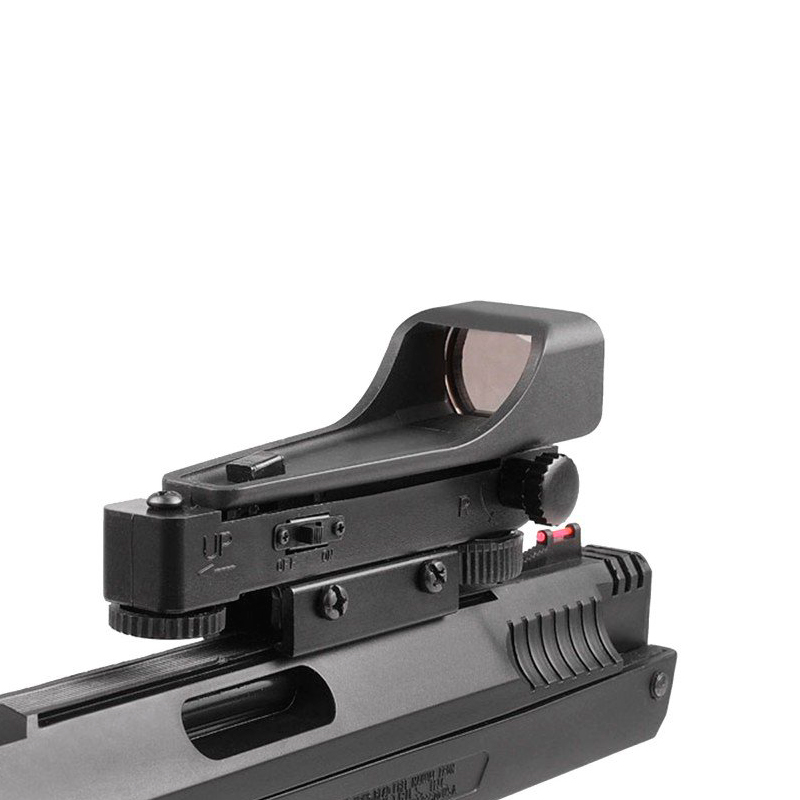 - Mira: Alça de mira com ajuste vertical e horizontal e Conjunto de mira aberta TRUGLO com fibra óptica