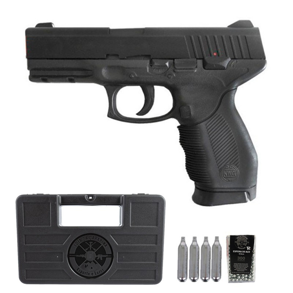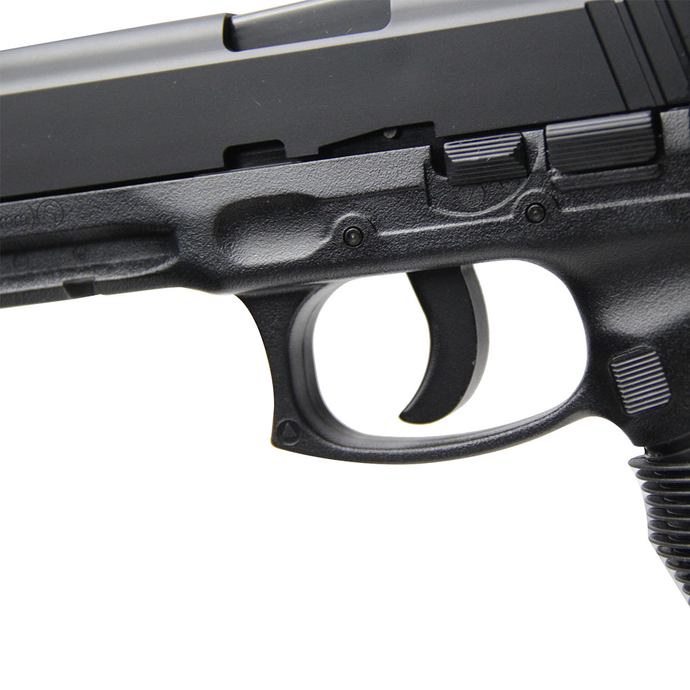 Pistola de Pressão Co2 KWC 24/7 no calibre 4.5mm, possui slide fixo com alimentação por cilindros de co2 0,12g. Construída em polímero de alta resistência.