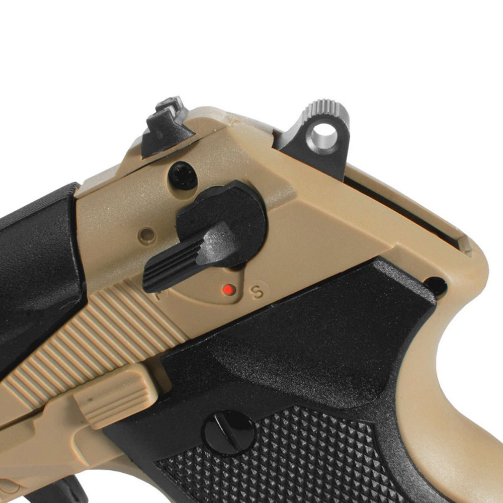 A Pistola CO2 PT-80 Desert Attack GNB possui gatilho de Ação Simples ou Dupla, acompanha 3 magazines de clip rotativo com capacidade de até 8 munições. Com trilho inferior para fixação de acessórios.