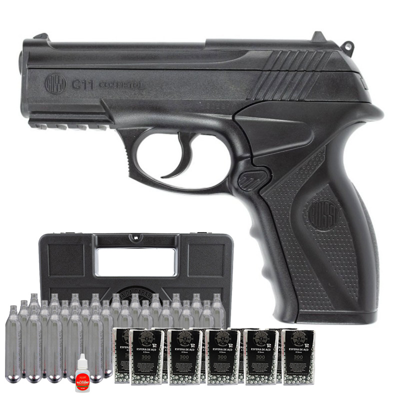 C11 PISTOLA PRESSÃO CO2 4.5MM + ESFERAS AÇO + CASE + SILICONE + CILINDRO CO2