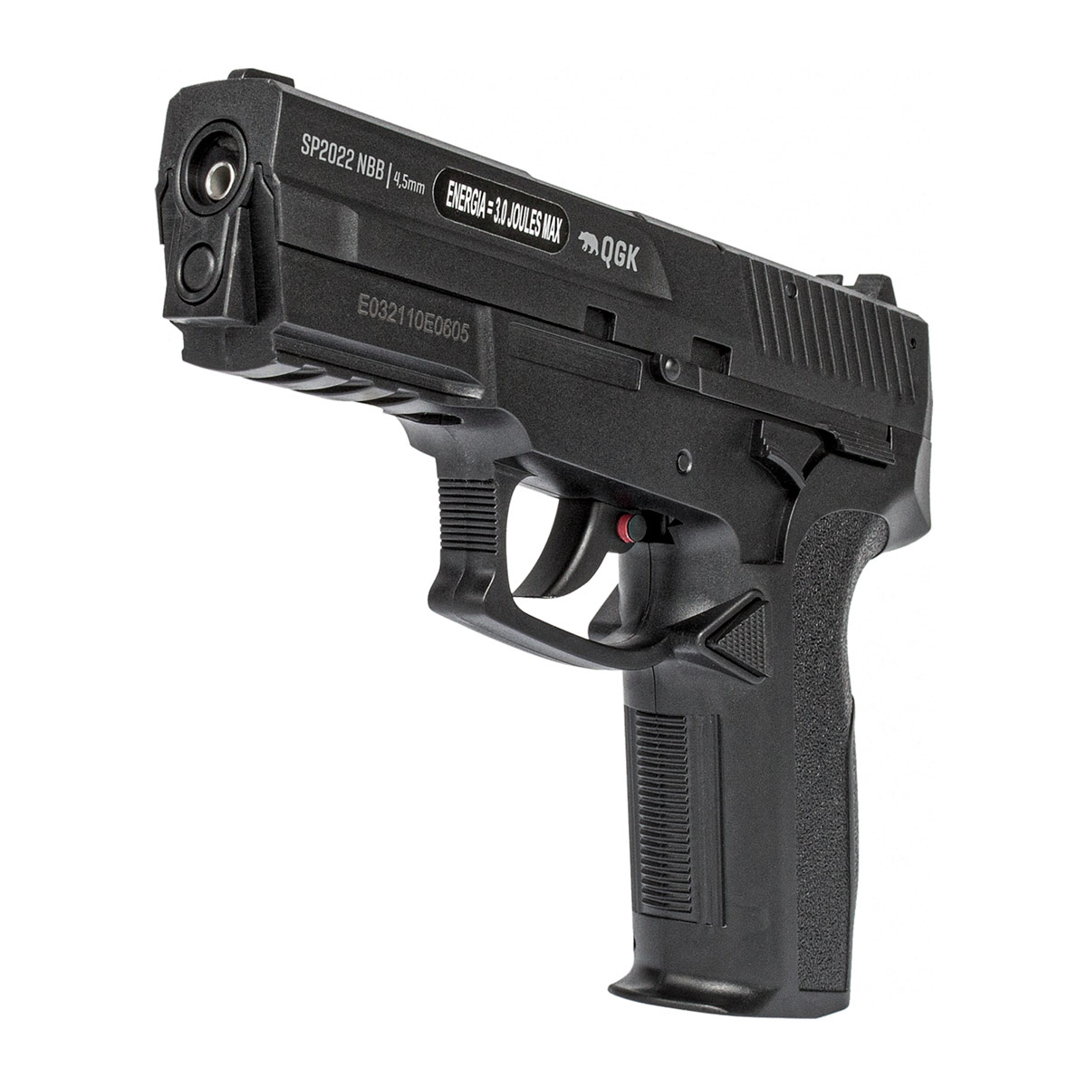 A SP2022 QGK é uma Airgun semi automática com sistema de propulsão por co2 que utiliza para alimentação cilindro de co2 12g. Isto é, você não precisa engatilhar a cada disparo.