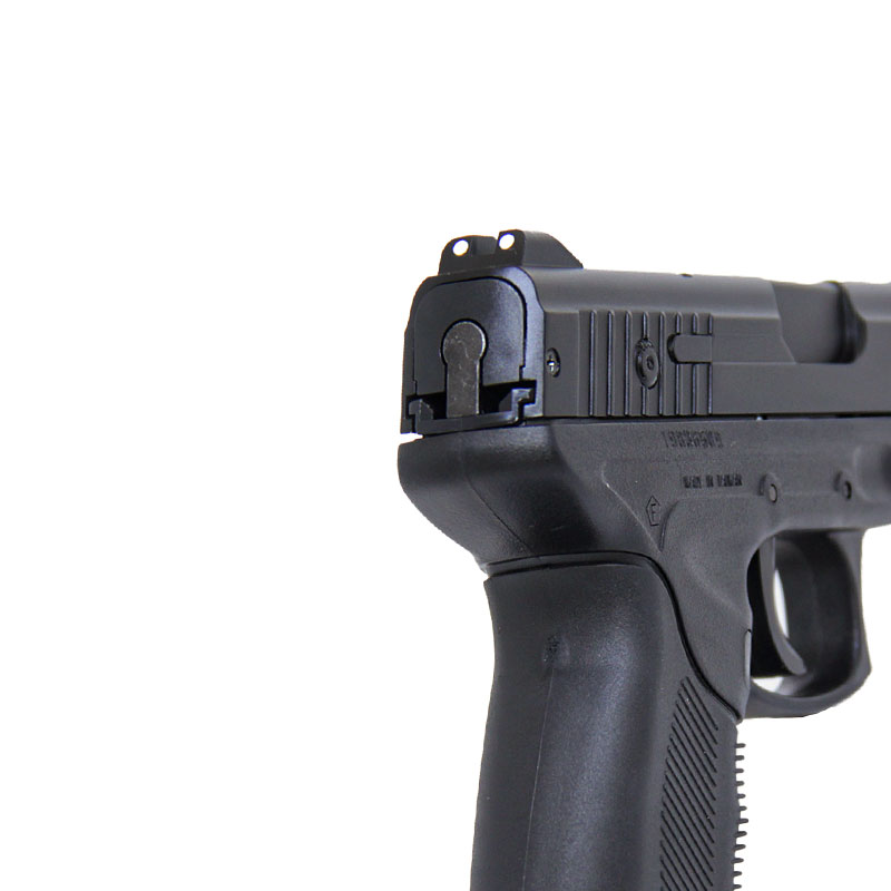 Slide em metal e corpo em polímero, essa Pistola 24/7 possui uma empunhadura ergonômica emborrachada, que oferece uma pegada bem confortável e firme.