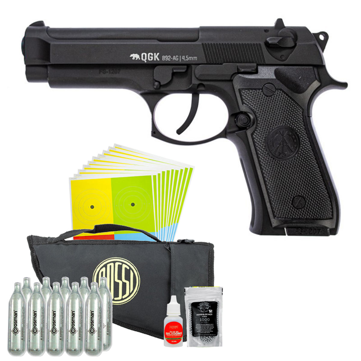 PISTOLA DE PRESSÃO CO2 GNB 4.5MM BERETTA 92 AG FULL METAL QGK + ESFERA DE AÇO 4.5MM LOJADACARABINA 1000UN