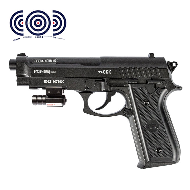 Pistola de Pressao Beretta PT92 Full Metal CO2 NBB 4.5mm QGK + Mira Laser + Alvos