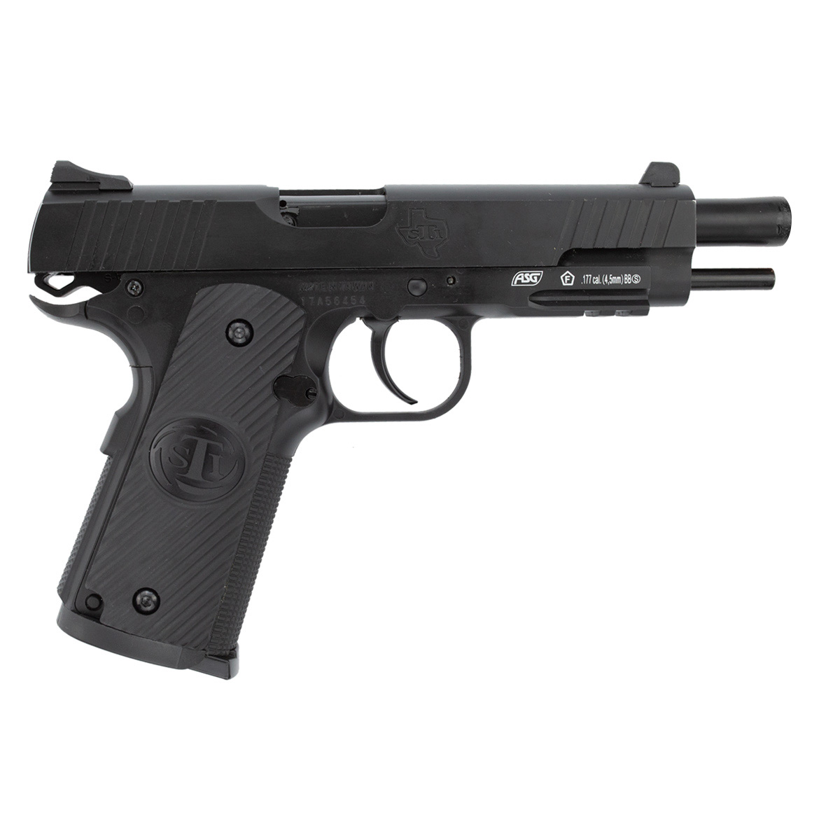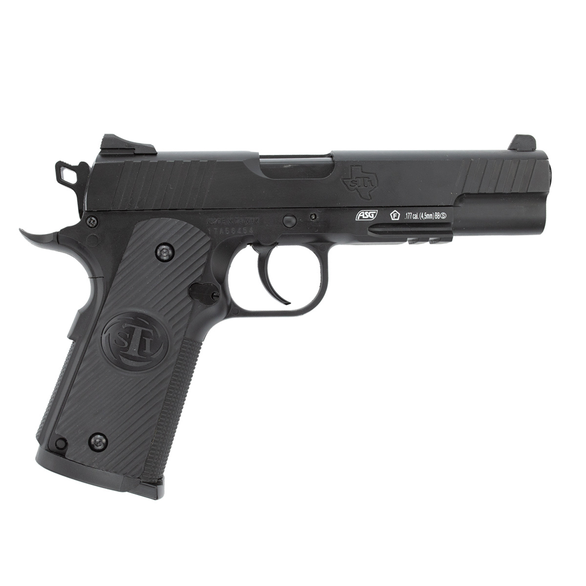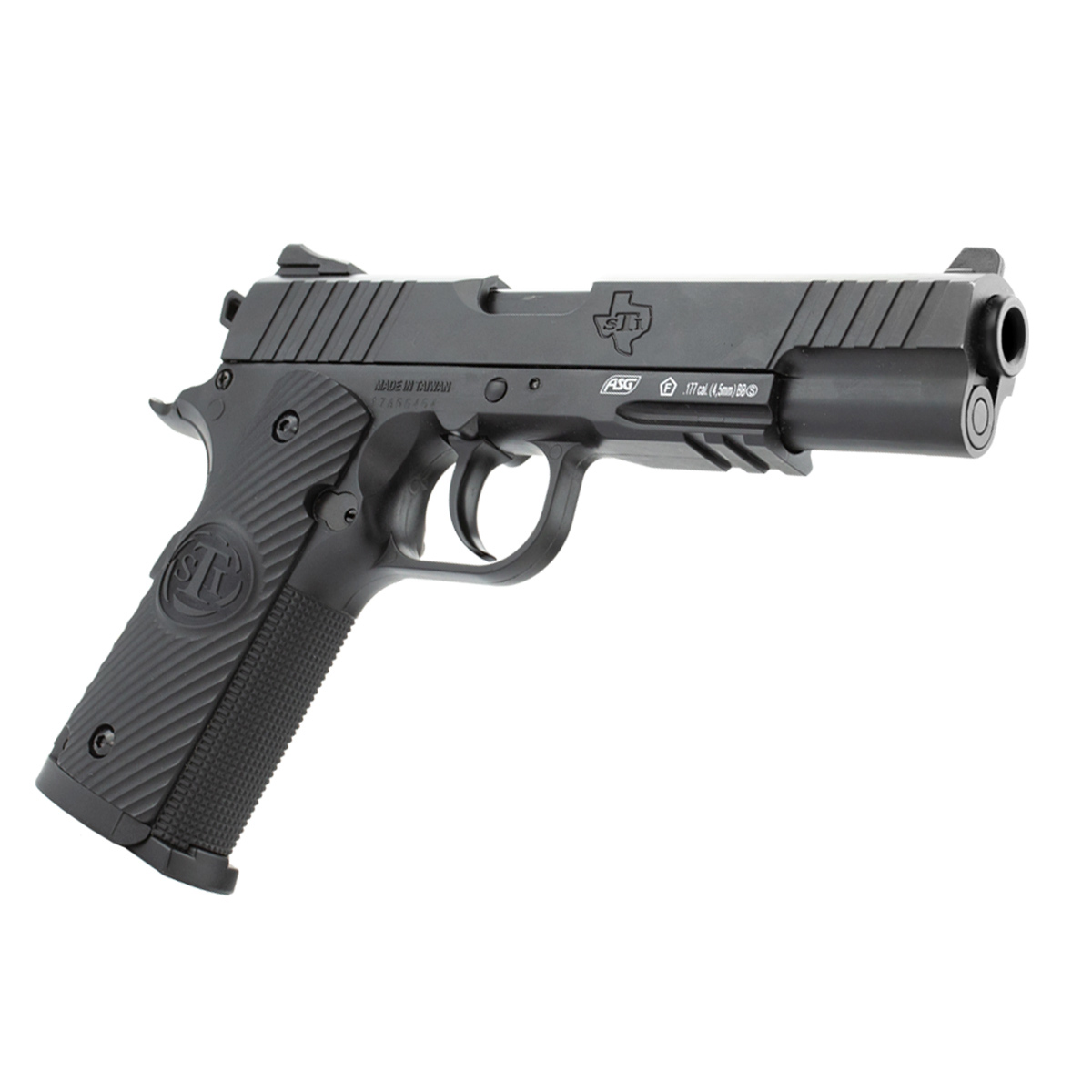 Pistola de Pressão no calibre 4.5mm e ação por cilindro de co2 12g é uma linda Pistola fabricada pela ASG e licenciada pela STI.