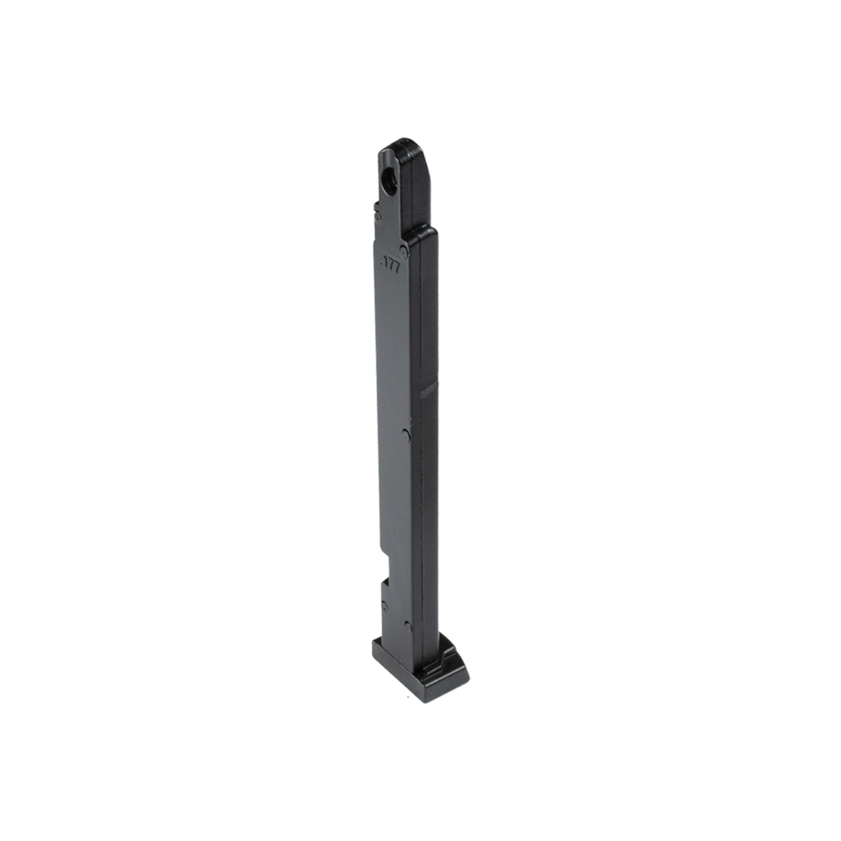 Seu magazine em metal, tem capacidade para até 20 esferas de aço.