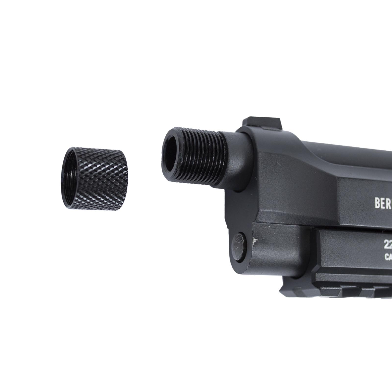 Ponteira rosqueável com rosca m14 esquerda, sendo possível instalar um silenciador para deixar a sua pistola Beretta com um visual mais tático.
