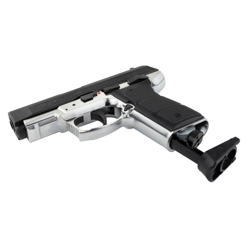 A pistola conta com a capacidade para até 15 esferas em seu magazine.
