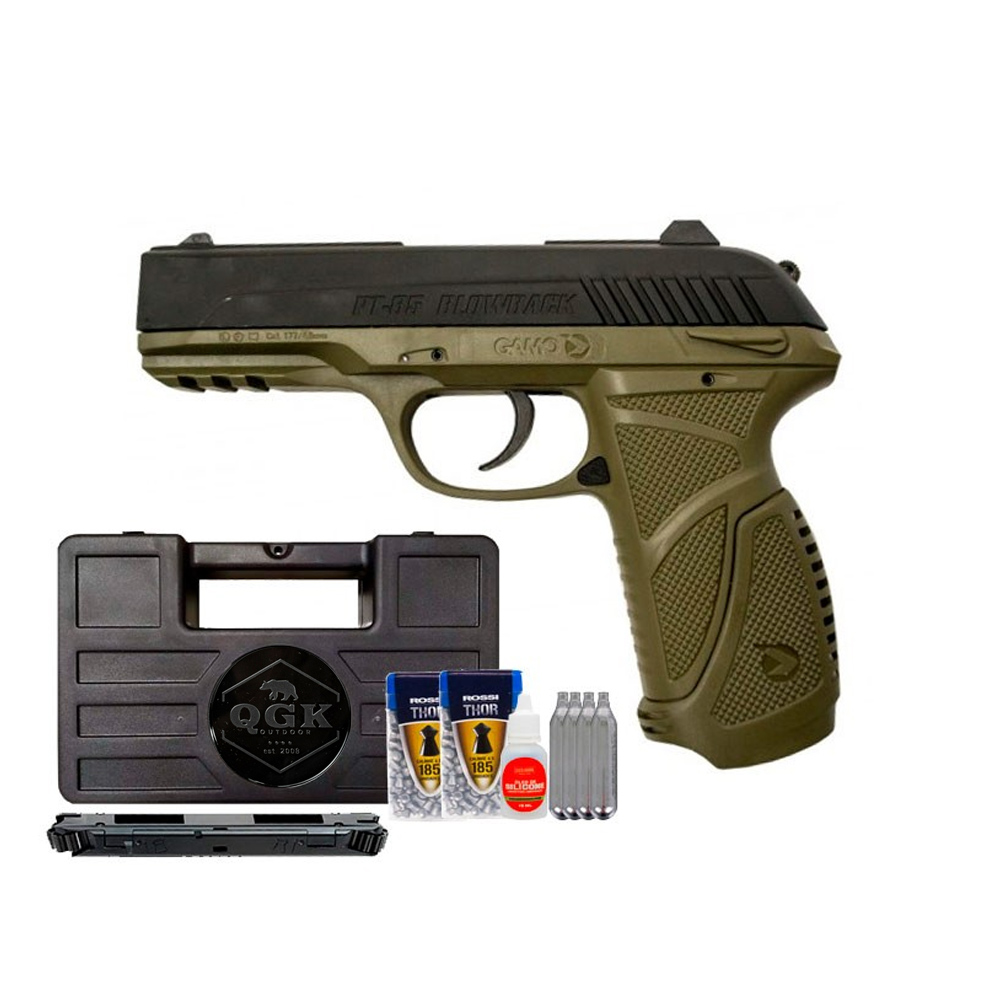 Pistolas com simulação Blowback, tem autonomia menor se comparada a pistolas sem blowback, pois esse sistema consome mais rápido o cilindro co2, mas não se preocupe, adicionamos 4 cilindros co2 junto desse kit para você.