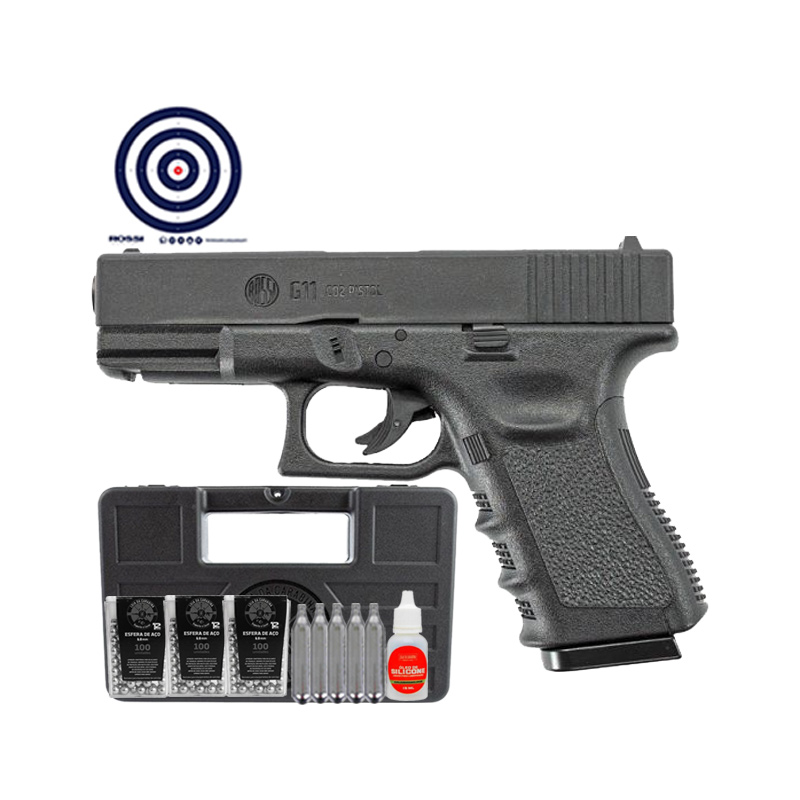 Pistola de Pressao CO2 Glock G11 Rossi 6mm + Maleta Rigida + Esfera de Aco + Oleo + CO2 + Alvos