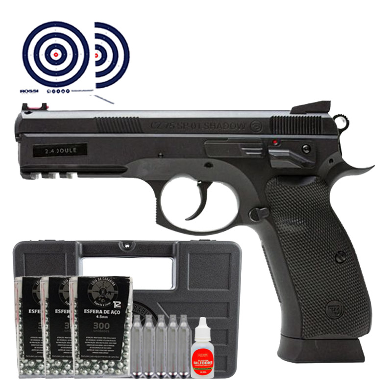 Pistola de Pressao Co2 GNB CZ SP01 Shadow - 4.5mm + CO2 + Esferas 4.5mm + Oleo + Case Rigido + Alvos