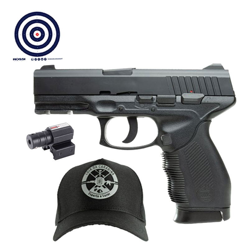 Kit Especial da LojaDaCarabina! Conta com Mira Laser com alcance de até 100 metros para facilitar a visada do trajeto do disparo, Boné LojaDaCarabina como uma ótima peça de vestuário e Alvos de Treino Rossi.