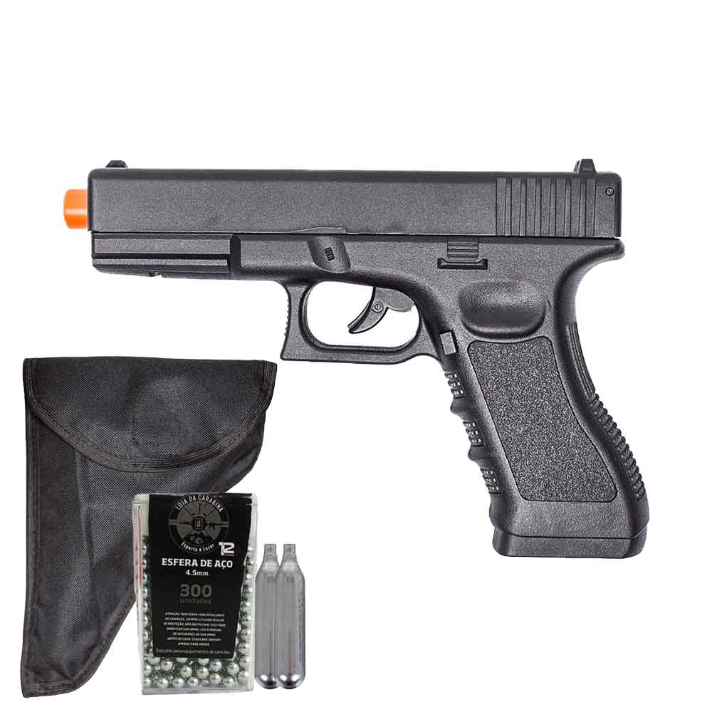 Pistola de Pressão Co2 Rossi G17 4.5mm + Esfera de Aço 300Un + 2x Cilindro Co2 + Capa Coldre