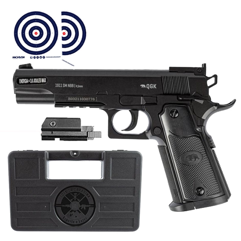 Pistola de Pressao Colt 1911 Co2 NBB 4.5mm QGK + Mira laser + Case Rigido LC + Alvos