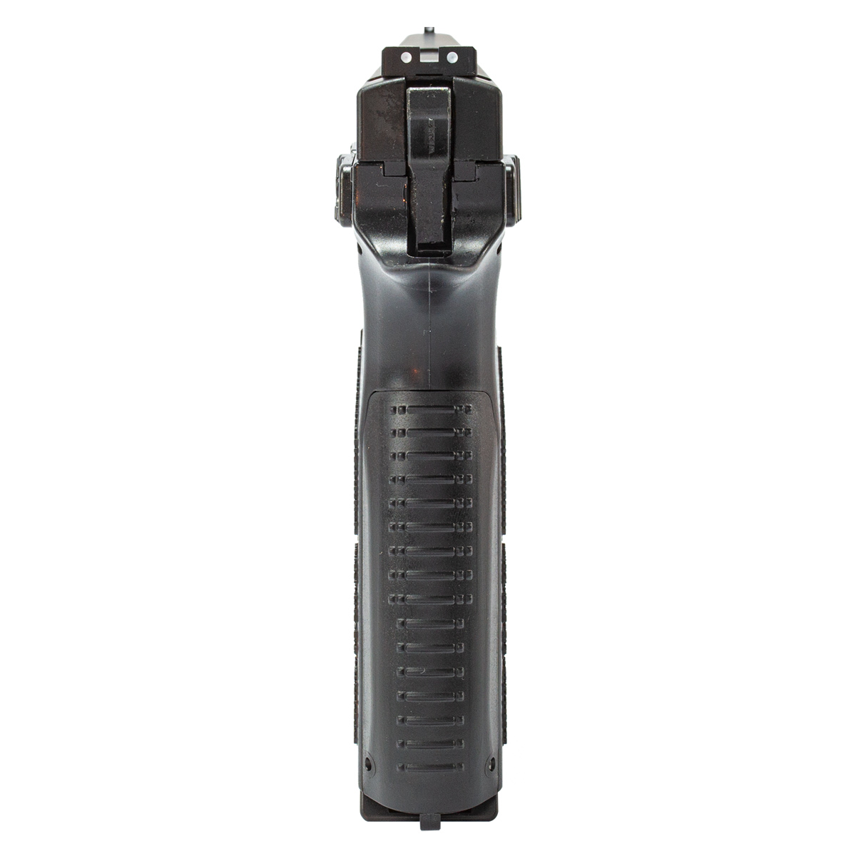 Além de ser linda e com marcações reais, possui simulação de recuo (blowback) onde a cada disparo o slide se movimenta para frente e para trás simulando um disparo com arma de fogo. E não é só o blowback que a torna mais realista! Ela ainda conta com um cão funcional.