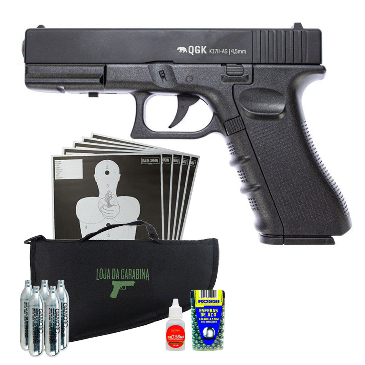 PISTOLA DE PRESSÃO GNB GLOCK K17 FULL METAL 4.5MM + ESFERAS + CASE + CO2