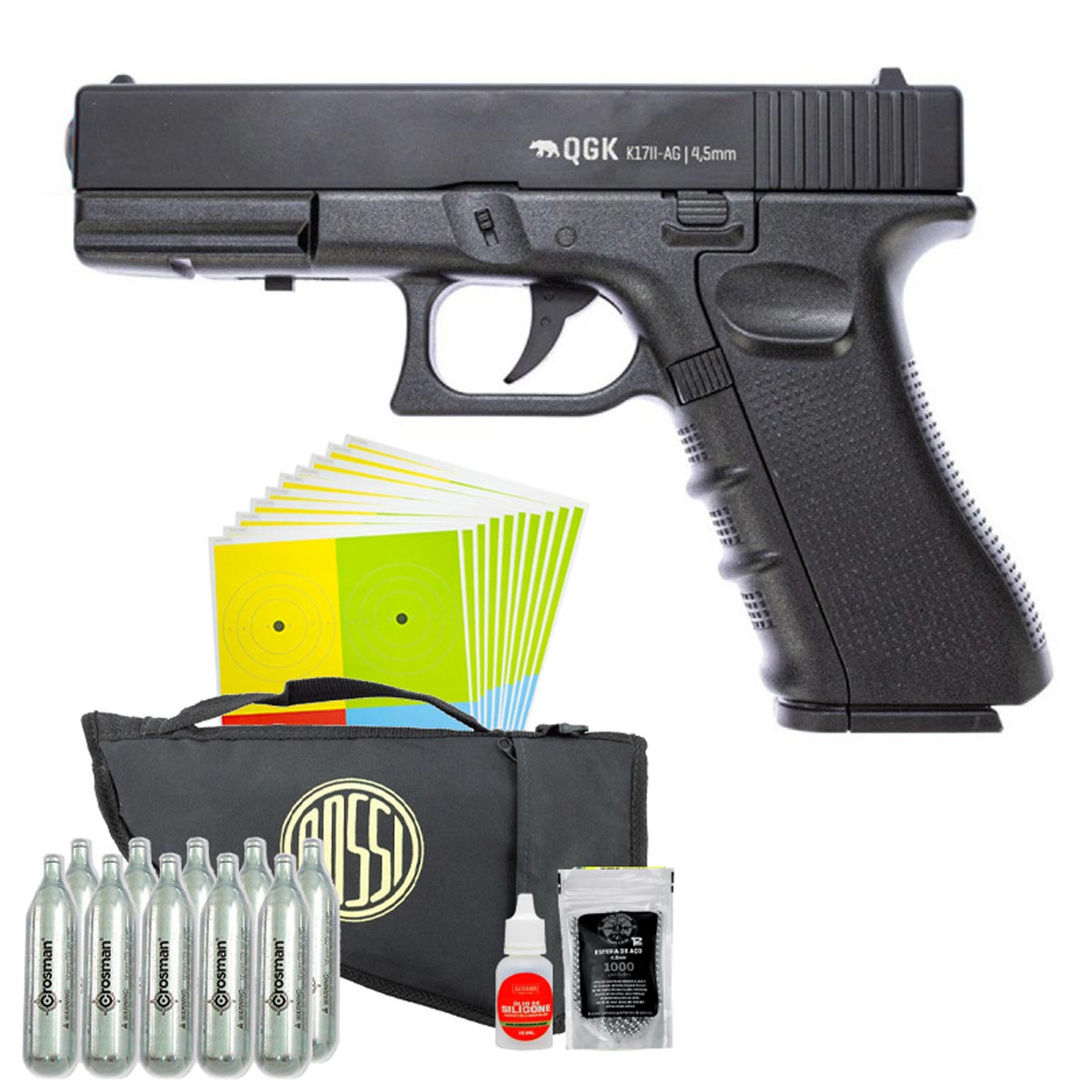 PISTOLA DE PRESSÃO GNB GLOCK K17 FULL METAL 4.5MM + ESFERA DE AÇO 4.5MM LOJADACARABINA 1000UN
